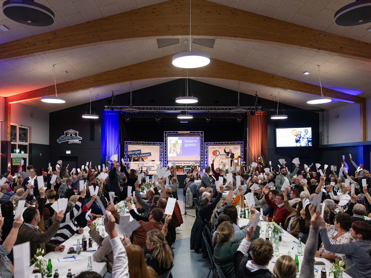 „Schleiden/Schönecken, 21. November – Die Fusion der VR-Bank Nordeifel und der Raiffeisenbank Westeifel ist beschlossen. Sowohl die Mitgliederversammlung der Raiffeisenbank am 19. November als auch die Vertreterversammlung der VR-Bank am 20. November haben mit überwältigender Mehrheit von 97,3% bzw. 100% für den Zusammenschluss gestimmt. Die Verschmelzung erfolgt zum 1. Januar 2026. Der Name der neuen Bank wird VR Bank EifelLand eG sein.
