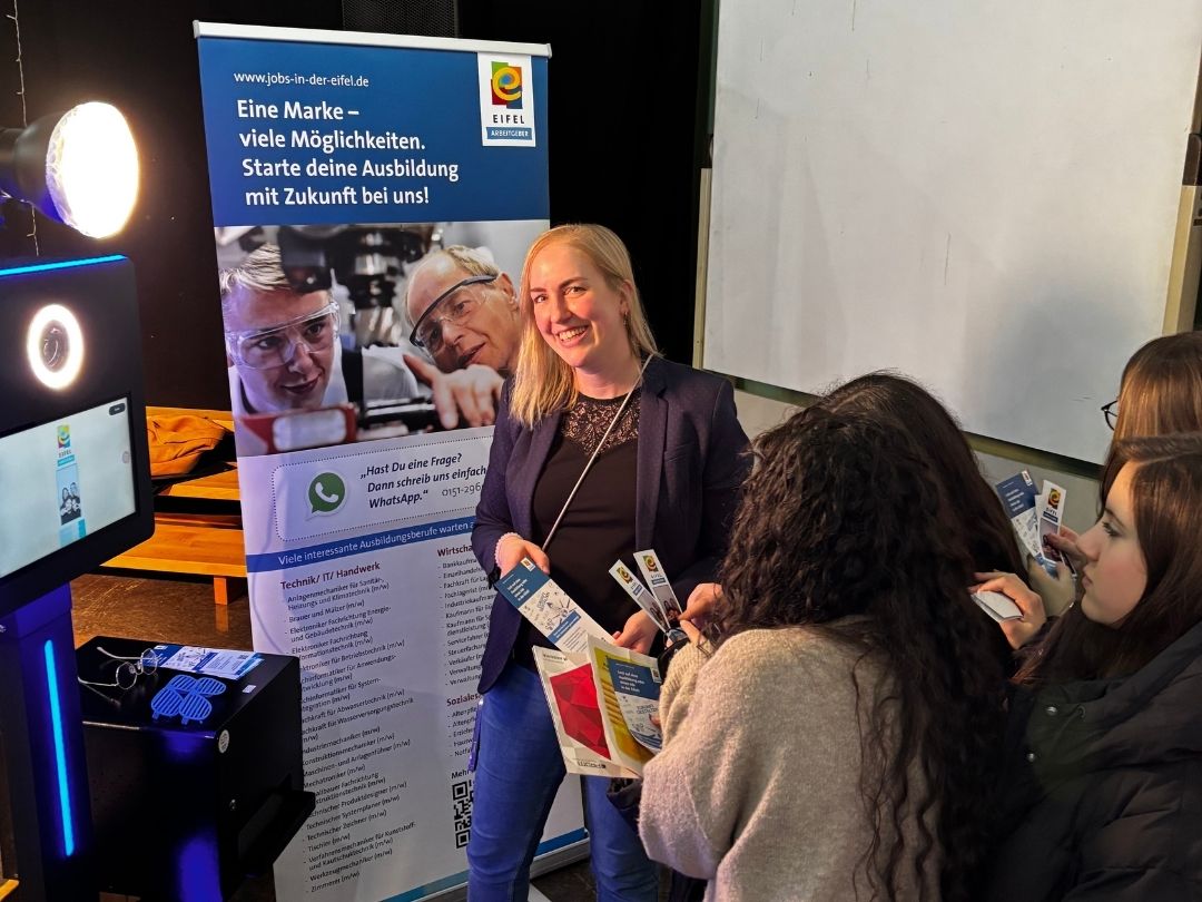 Ein besonderes Highlight war erneut die Fotobox der EIFEL Arbeitgeber, die für viel Spaß und zahlreiche Erinnerungsfotos sorgte. In diesem Rahmen informierte auch das Team der Arbeitgebermarke EIFEL über die Werte, die hinter dem Netzwerk stehen. Vielen Jugendlichen wurde dabei erstmals bewusst, welchen Stellenwert das bunte „e“ besitzt: geprüfte Arbeitgeberqualität, Verantwortung, regionales Engagement und eine verlässliche, zukunftsorientierte Ausbildung.
