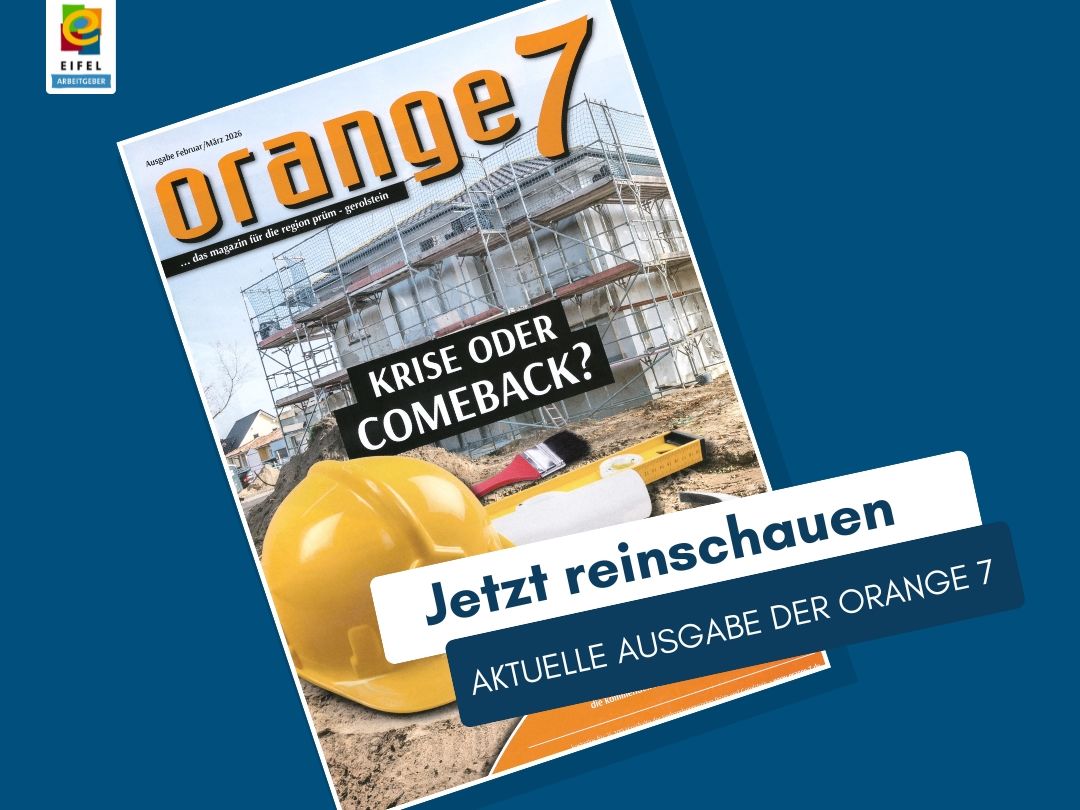 In der aktuellen Ausgabe der Orange 7 gibt es spannenden Lesestoff für alle, die sich für unsere starke Arbeitgebermarke EIFEL und regionale Zukunftsthemen interessieren. Auf Seite 29 und 30 stellt das Magazin die EIFEL Arbeitgeber in einem ausführlichen Bericht vor – mit Einblicken in die gemeinsame Strategie, konkrete Unternehmensbeispiele und den Blick darauf, wie nachhaltiges Arbeitgeberhandeln heute in der Eifel gelebt wird.