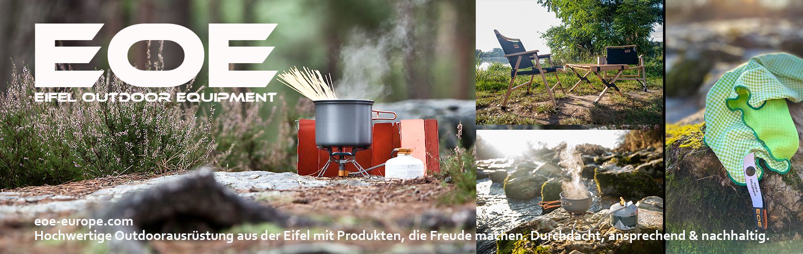 Wir sind EOE-Eifel Outdoor Equipment, ein junger und exklusiver Spezialist aus der Eifel für nachhaltige und hochwertige Outdoor-Ausrüstung. Unser Produktprogramm wird mit jeder Saison erweitert, eine wichtige Sache aber bleibt konstant: „Unsere Produkte sollen dem Anwender Spaß machen und lange halten!“ Von Anfang an haben wir besonders auf Nachhaltigkeit bei Material und Produktion geachtet, kurzlebige Wegwerfprodukte gibt es auf dem Markt mehr als genug. Da machen wir nicht mit!“ ist die Devise von Firmeninhaber Marcus Bauer.